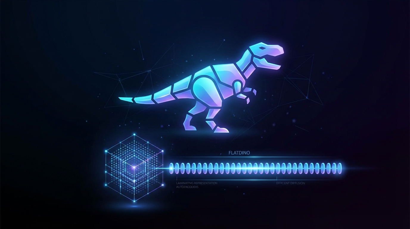 I ricercatori hanno introdotto FlatDINO, un autoencoder variazionale progettato per semplificare le griglie di patch dense provenienti da encoder come DINOv2, che spesso comportano costi computazionali elevati. FlatDINO comprime la rappresentazione in una sequenza unidimensionale di 32 token continui, ottenendo una riduzione di 8 volte nella lunghezza della sequenza e una compressione di 48 volte nella dimensionalità totale.